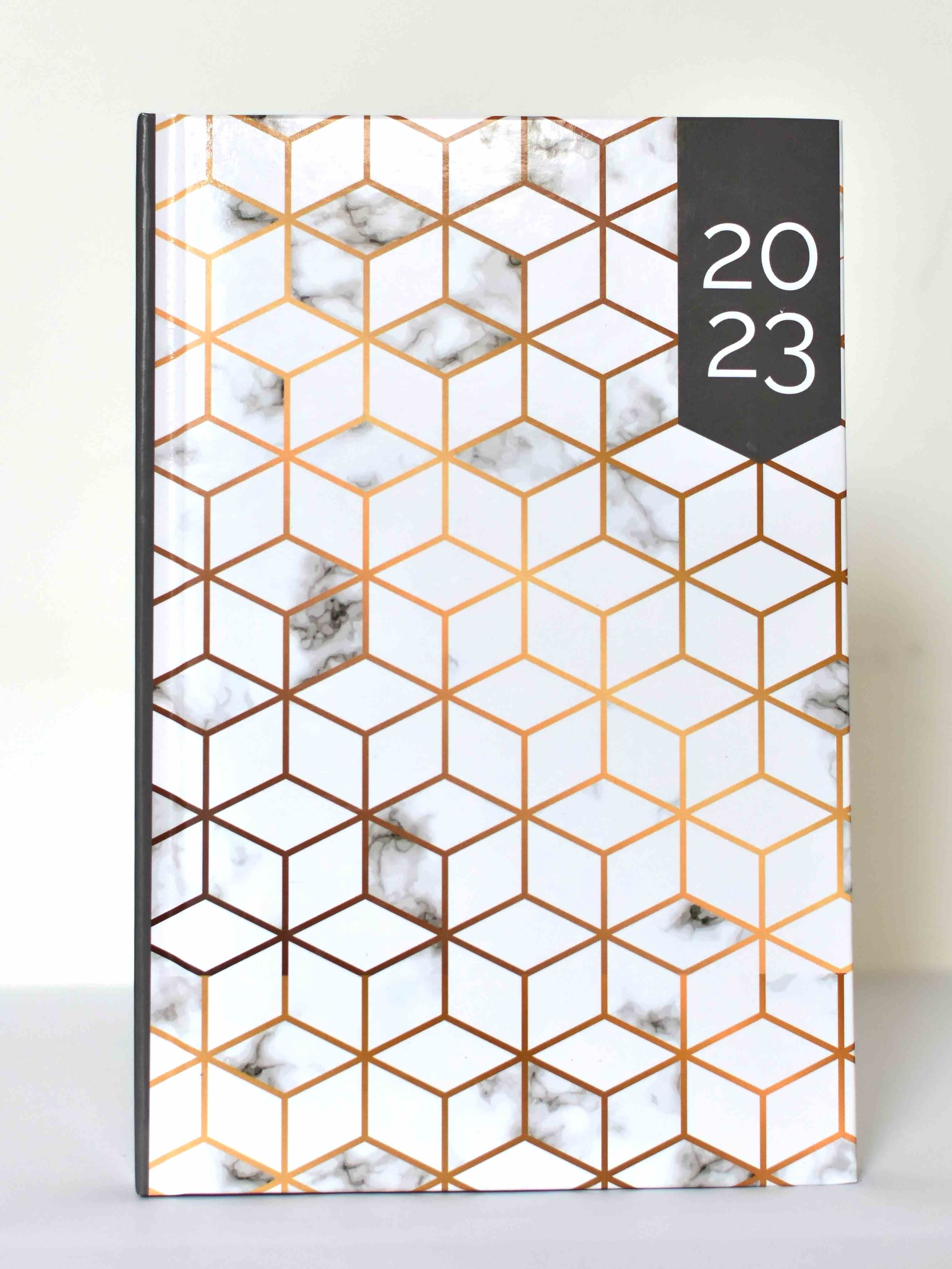 TERMINARZ A5 DZIENNY LAMINOWANYblok :140x205 mm,320 str.,papier biały 60g/m2, druk 2 kolory, tasiemka, blok kalendarza szyty nićmi, Okładka: twarda z kolorowym nadrukiem i datą, laminowana