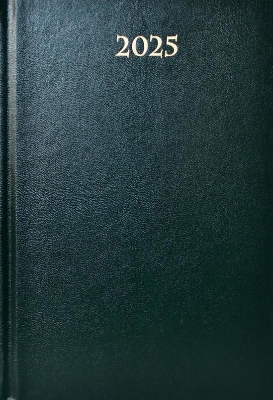 blok: 140x205 mm, 320 stron, papier biały 60g/m2, druk 2 kolory, tasiemka, blok kalendarza szyty nićmi OKŁADKA: skóropodobna, tektura, bez gąbki, ze złoceniem roku