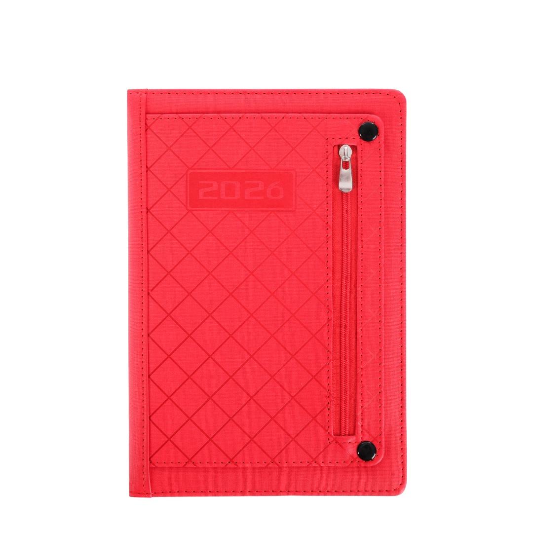 OKŁADKA: THERMO PU miękka z gąbką 3 mm, przeszycie wokół oprawy, tłoczona, z kieszonką zasuwaną na suwak