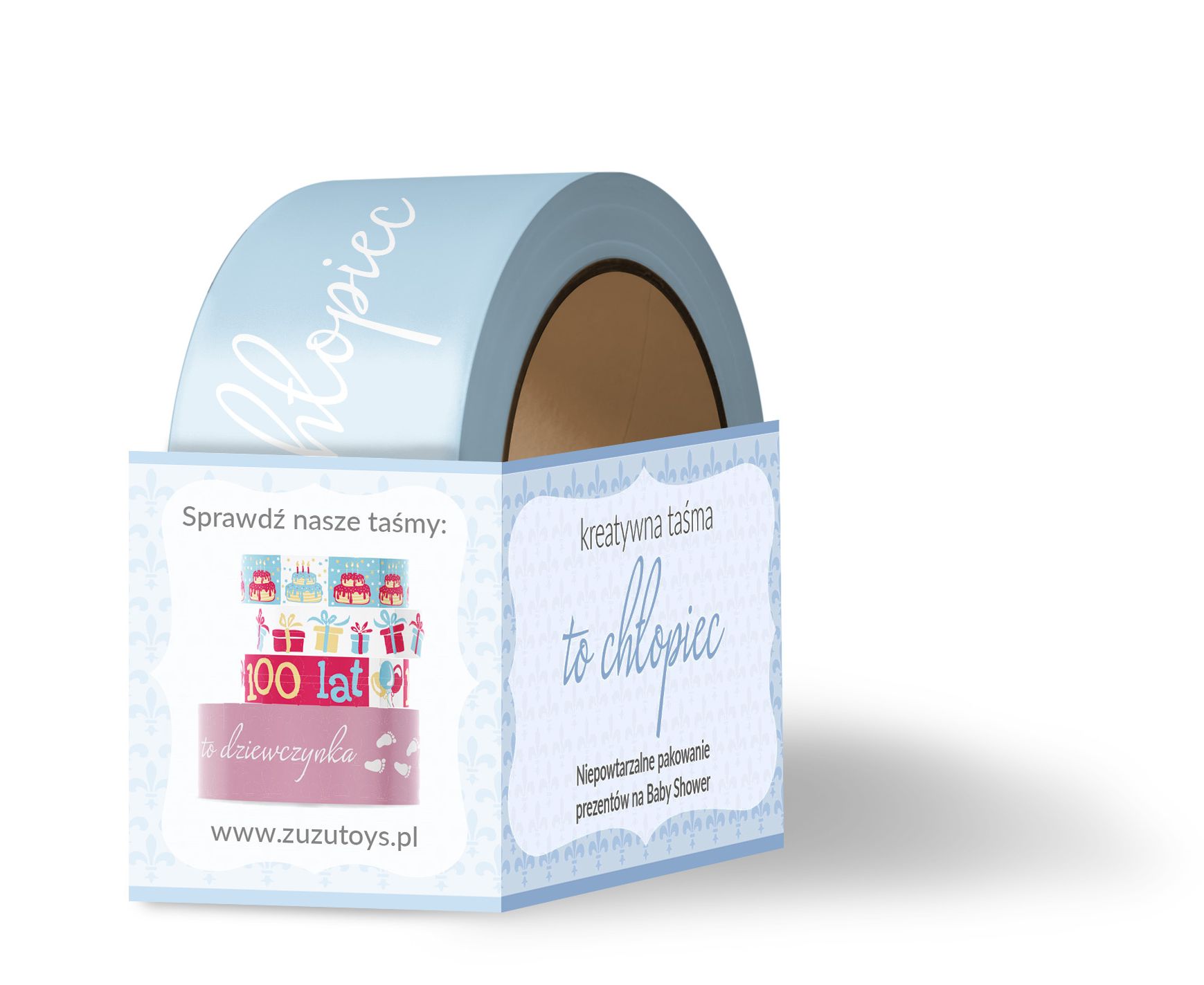 Taśma To chłopiec przeznaczona jest do pakowania prezentów na Baby Shower. Pozwala na stworzenie własnej oryginalnej aranżacji opakowania prezentu dla przyszłej mamy. Taśma dostępna również w wersji dla dziewczynki. długość 50 metrów.