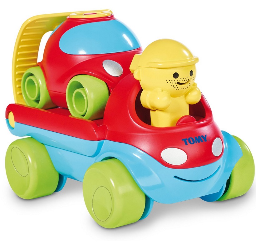 Kolorowy pojazd pomocy drogowej z dodatkowym autkiem.