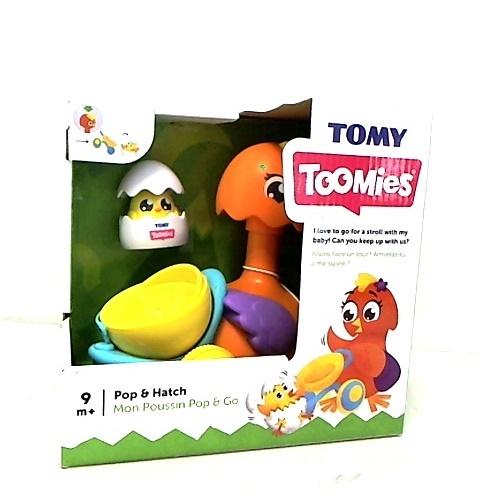 Kura z jajkiem w wózeczku. Wystarczy nacisnąć na głowę kury, a wprawisz ją w ruch. Jajko może wypaść, pęknie skorupka i dziecko zobaczy kurczaczka.
