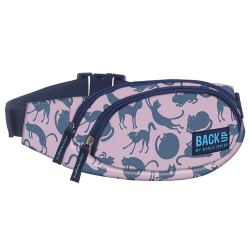 Pojemna i funkcjonalna torba na pas. Doskonale sprawdzi się na spacerze lub podczas innych letnich aktywności. Saszetka jest niezastąpiona dla ceniących sobie wygodę oraz lubiących mieć, tak zwane, ""wolne ręce"". Charakteryzuje się bardzo starannym wykonaniem oraz ciekawym, wzorem w koty. Saszetkę uszyto z wytrzymałego i wodoodpornego materiału. Dwie pojemne komory oraz bezpieczna tylna kieszeń zmieszczą z powodzeniem telefon, klucze, portfel, chusteczki i inne drobiazgi. Duża klamra jest bardzo wygodna w użyciu. Produkt dopasowany do plecaków i piórników tej samej serii.