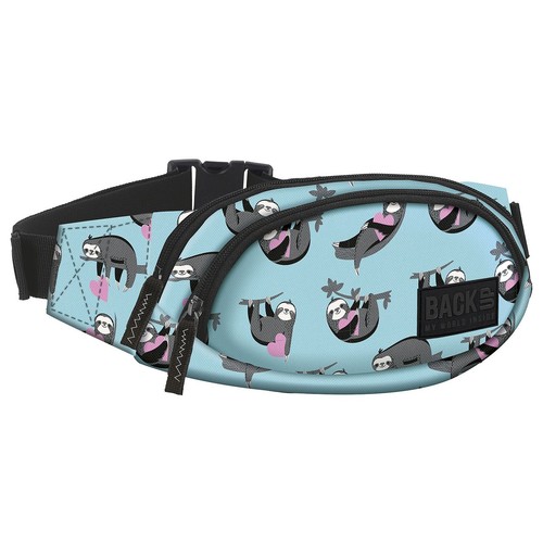 Torba na biodra BackUP model A 21 w modnym kolorze turkusowym, na którym zawitały słodkie leniwce, które wysyłają dużo miłości! Czeka Cię z nimi wiele przygód!