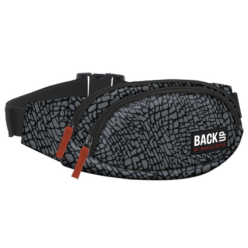 Torba na biodra BackUP model A 38 z motywem kolorystycznym skóry słonia został ożywiony poprzez czerwone wykończenia i dodatki.
