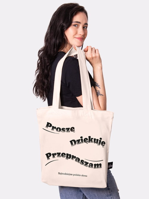 Najtrudniejsze polskie słowa, z którymi problem ma wielu rodzimych użytkowników polszczyzny? PROSZĘ, DZIĘKUJĘ, PRZEPRASZAM! Potrafią sprawić o wiele więcej kłopotów niż niejeden łamaniec językowy, toteż zgodnie z naszą misją edukacyjną postanowiliśmy umieścić je na stylowej torbie! Torba bawełniana NAJTRUDNIEJSZE POLSKIE SŁOWA to oryginalny pomysł na prezent dla miłośnika polszczyzny oraz entuzjasty savoir vivre'u. Podaruj ją najbardziej kulturalnej osobie, jaką znasz! Torba z nadrukiem NAJTRUDNIEJSZE POLSKIE SŁOWA została uszyta od A do Ż w Polsce z miłości do literatury, kultury polskiej i poprawnej polszczyzny. Prezent dla obcokrajowca i miłośnika języka polskiego jak znalazł! Gramatura 280 g/m Nadruk wykonany metodą sitodruku (wysokiej jakości oraz bardzo trwały) 100% bawełna, torba ekologiczna Idealny prezent dla obcokrajowca i miłośnika polszczyzny Elegancka metka boczna W środku torby pojemna kieszonka na akcesoria Wymiary: 40,5 x 41 x 8,5 cm, ucho: 63 x 3,5 cm (wymiary mogą się różnić do 1,5 cm) Prać w niskiej temperaturze, prasować na lewej stronie, nie czyścić chemicznie