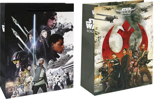 Torba papierowa, matowa na licencji Star Wars, średnia. Wymiary: 26x32,4x12,7 cm. Pakowane po 10 szt.