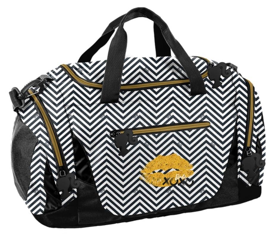 Torba sportowa Barbie Lipstick. Pojemna torba o szerokim zastosowaniu, idealna na basen, zajęcia sportowe czy fitness. Świetnie sprawdzi się również podczas wyjazdów weekendowych czy wakacyjnych. Model ten posiada jedną pojemną komorę, dwie kieszenie boczne, spośród których jedna jest specjalnie przeznaczona do przechowywania obuwia. Wyposażona jest w usztywniane dno, regulowany pasek na ramię z osłonką oraz dwa wygodne uchwyty do przenoszenia.