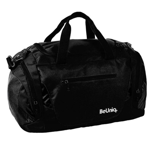 Torba sportowa BeUniq Black. Pojemna torba o szerokim zastosowaniu, idealna na basen, zajęcia sportowe czy fitness. Świetnie sprawdzi się również podczas wyjazdów weekendowych czy wakacyjnych. Model ten posiada jedną pojemną komorę, dwie kieszenie boczne, spośród których jedna jest specjalnie przeznaczona do przechowywania obuwia. Wyposażona jest w usztywniane dno, regulowany pasek na ramię z osłonką oraz dwa wygodne uchwyty do przenoszenia.
