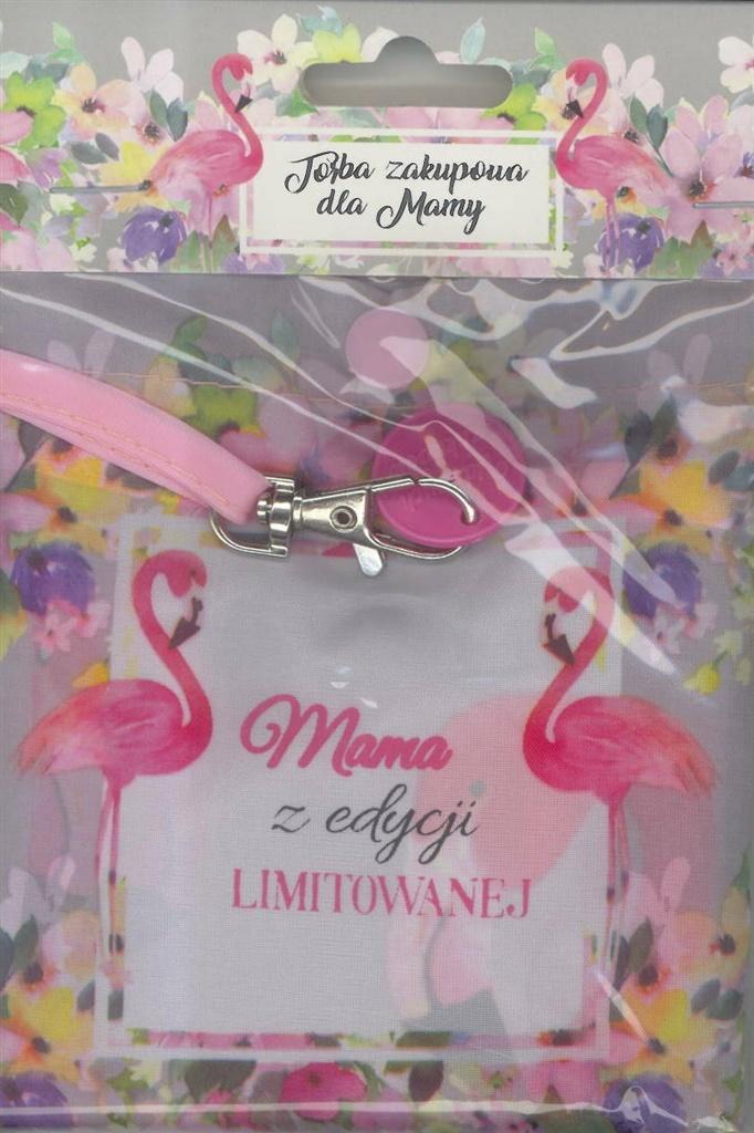 * posiada karabińczyk, na którym zawieszony jest żeton do wózka na zakupy