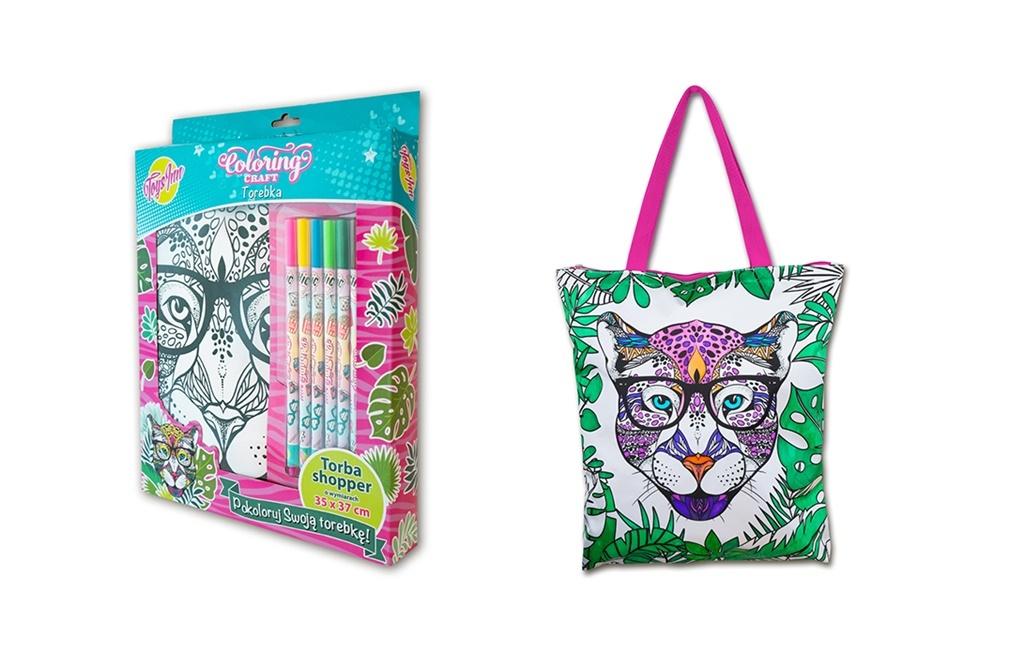 Zestaw zawiera torebkę shopper w modny wzór do pokolorowania oraz sześć markerów.