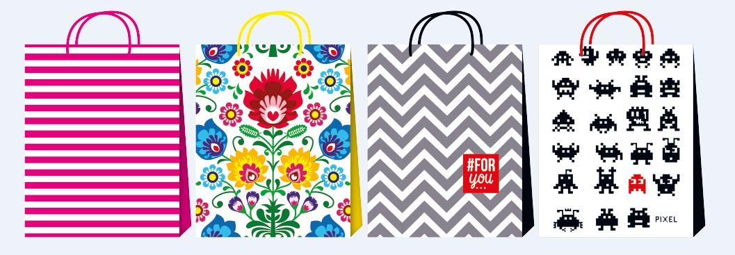 Lakierowana torebka na prezenty, dostępna w różnych wzorach, wzór wysyłany losowo.