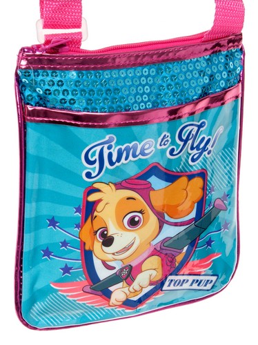 Torebka na ramię pokryta kolorowymi cekinami, które mienią się w blasku słońca. Torebka w formie saszetki jest zamykana na zamek i świetnie chroni wszystkie skarby właścicielki. Całość została pokryta podobiznami ulubionych bohateró