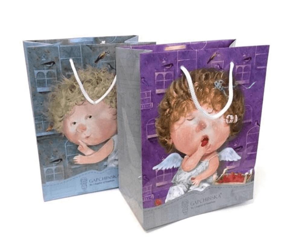Torebka ozdobna Aniołki pionowa S+. Dostępne różne wzory - wzór wysyłany losowo.