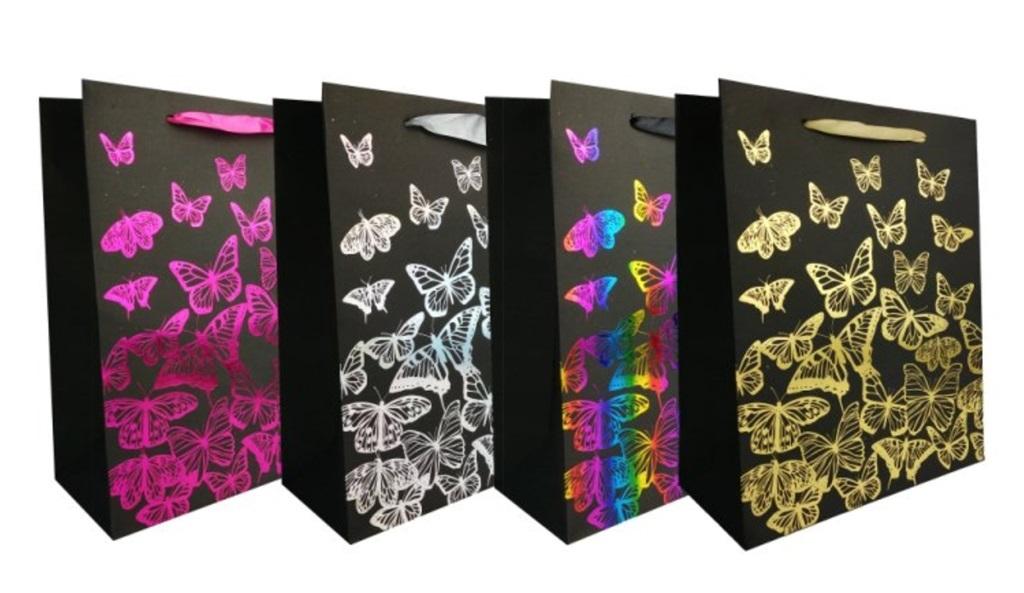 Cena za pojedynczą sztukę, mix wzorów, towar wysyłany losowo. Torebka prezentowa o wymiarze 31x42x12 cm.