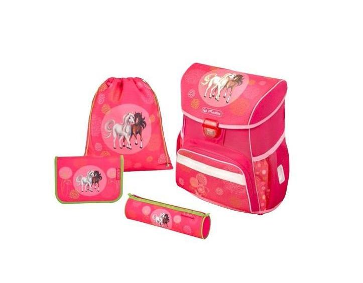 Ergonomicznie ukształtowane i wykonane z przepuszczającego powietrze plecy tornistra, miękko wyściełane szelki, łatwe zapinanie za pomocą klamry ze światełkiem odblaskowym, dwie otwarte boczne kieszenie ze ściągaczem, przednia kieszeń zapinana na zamek, wewnętrzna przegroda organizująca przestrzeń tornistra, materiał łatwy do czyszczenia, plastikowa kieszonka z planem lekcji na wewnętrznej stronie górnej klapy, stabilna plastikowa podstawa, materiał odblaskowy 3M Scotchlite na przedniej i bocznych kieszeniach oraz na szelkach. W komplecie: piórnik 16 cz., piórnik kosmetyczka okrągła oraz worek szkolny. szerokość: 31 cm, wysokość: 37 cm, głębokość: 24 cm, pojemność: 15 l, waga: ok. 900 g