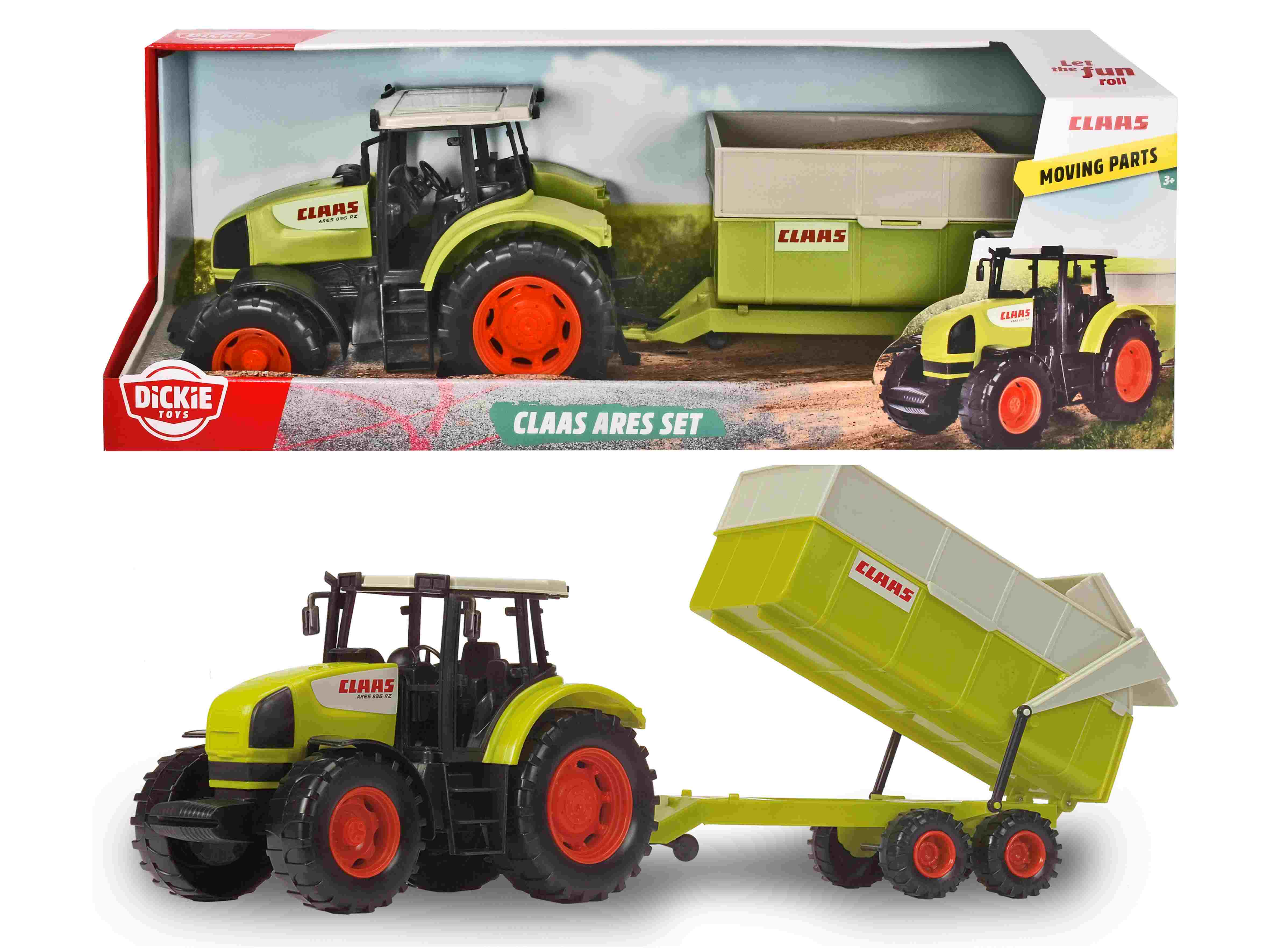 Traktor Claas Ares z ruchomą, uchylną przyczepą.