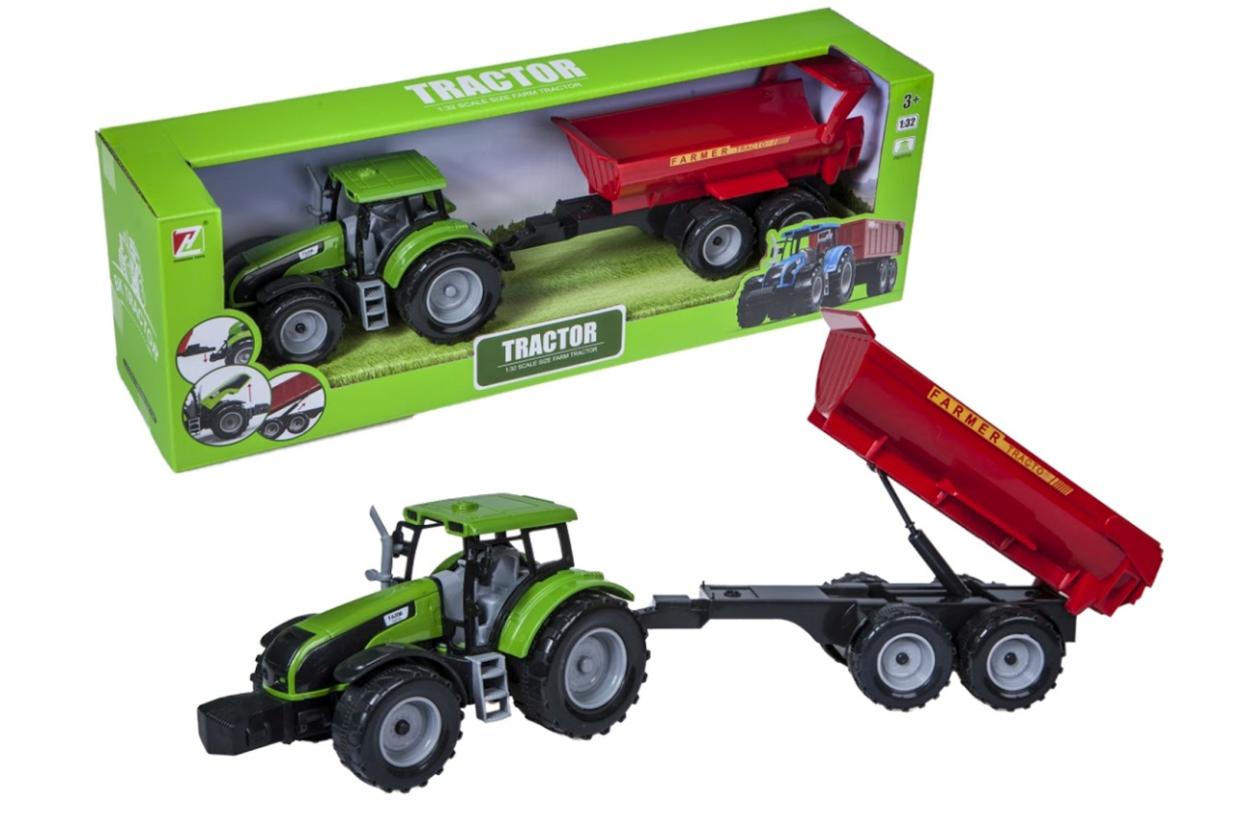 Traktor z przyczepą - podnoszona maska, 3 kolory: czerwony/niebieski/zielony.