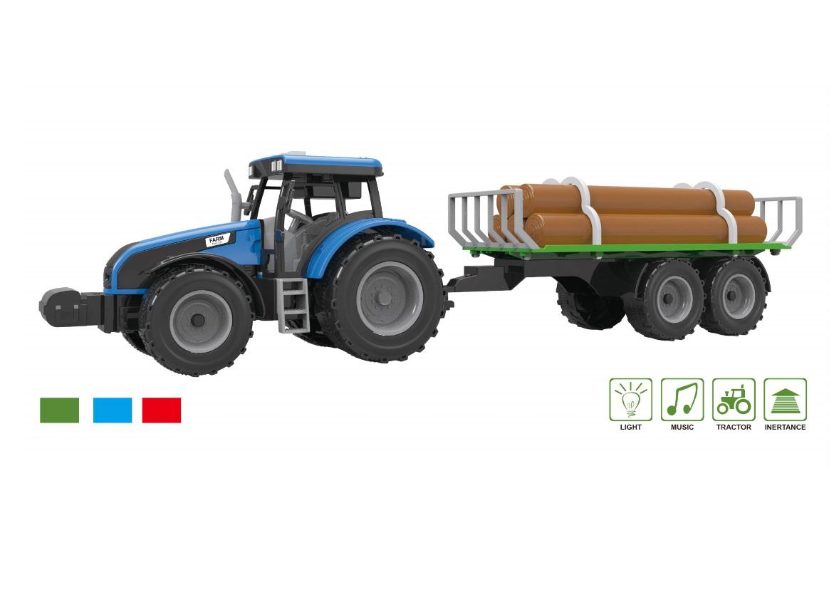 frykcja podnoszona maska skala - 1:32, traktor 22 cm, przyczepa 24 cm odgłos traktora, świecą się światła baterie załączone mix kolorów, towar wysyłany losowo
