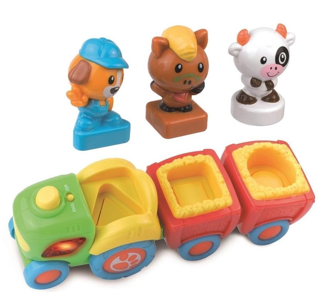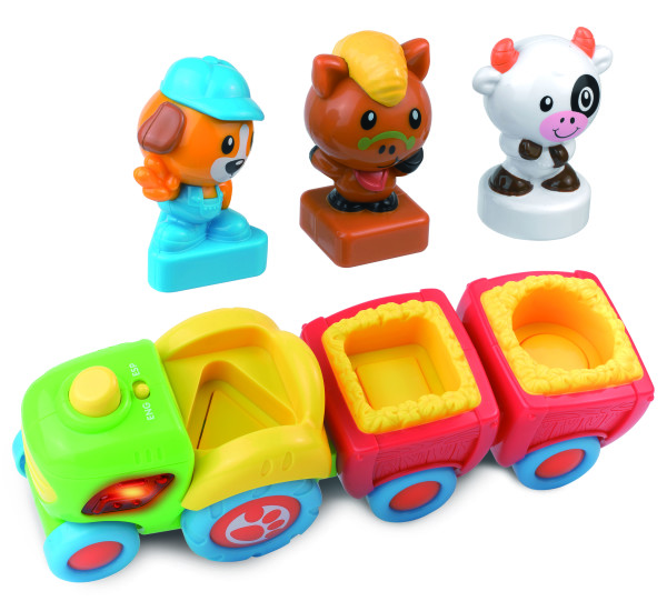 Traktor gra melodyjki i świeci światełkiem. Można wozić nim zwierzątka. Kolorowa zabawka pobudza wyobraźnię, sympatyczne zwierzaki zachęcają do wesołej zabawy.
