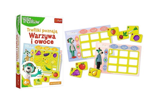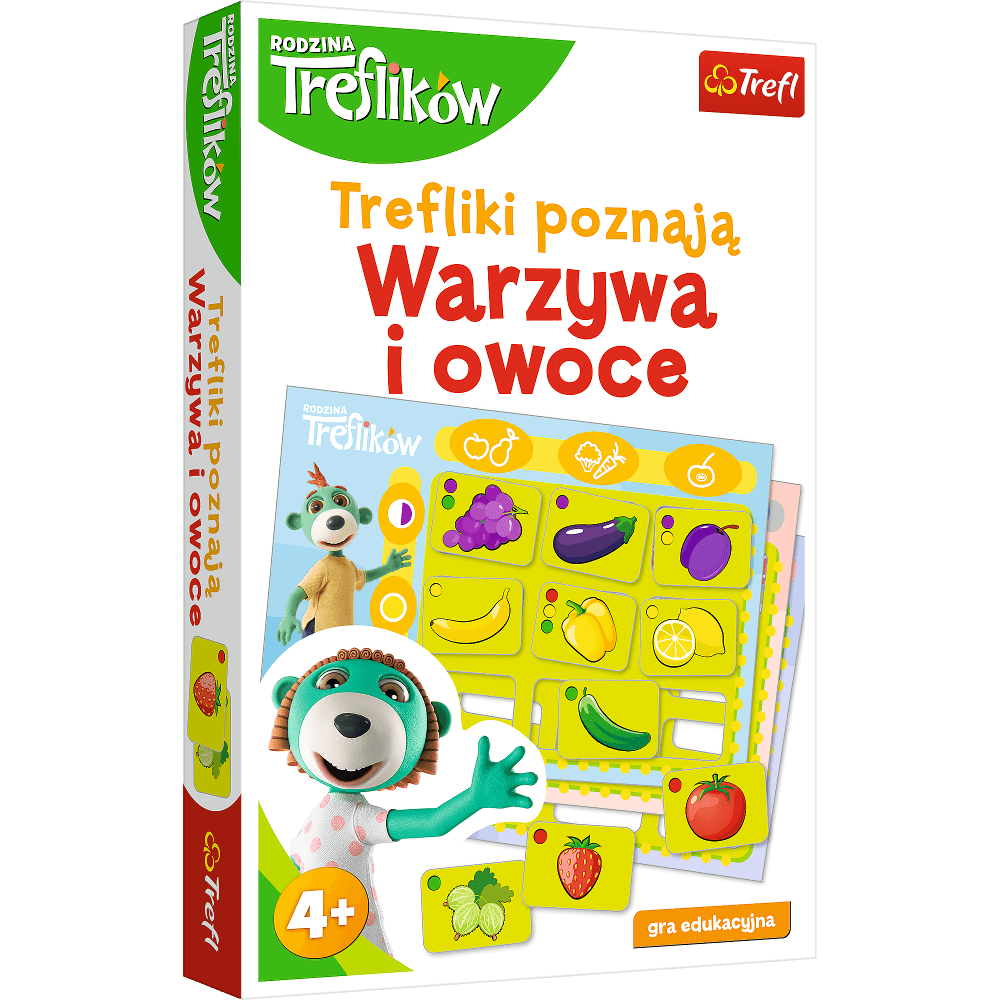 Trefliki poznają: Warzywa i owoce to gra edukacyjna, która w zabawny sposób pomaga poznać warzywa i owoce. Ćwiczy zdolności poznawcze, spostrzegawczość i logiczne myślenie. Pomaga również rozwijać słownictwo i ćwiczy koncentrację. Do gry dołączone są propozycje zabaw.