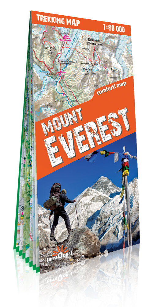 Dwustronnie laminowana, wygodna w użyciu mapa rejonu masywu Mount Everest w Himalajach nepalskich została stworzona specjalnie z myślą o osobach aktywnych, wyruszających na trekking do Nepalu.