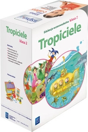 Tropiciele to cykl podręczników dla klas 1-3, który doskonale sprawdza się w klasach z uczniami o zróżnicowanym poziomie gotowości szkolnej. Pakiet zapewnia uporządkowany sposób przekazywania wiedzy, jednocześnie pozostawiając uczniom możliwość samodzielnych poszukiwań i badań.Rekomendujemy zakup kompletu materiałów do klasy drugiej w wygodnym, kolorowym pudełku, które zawiera: Podręczniki (części 1-5)Dzięki utrzymaniu zasady stopniowania trudności (czytanie na trzech poziomach) teksty zamieszczone w podręcznikach pozwalają dziecku na doskonalenie techniki płynnego czytania oraz czytania ze zrozumieniem. Zapewniają także rozwijanie zainteresowań, inspirują do samodzielnych poszukiwań informacji, rozbudzają wrażliwość plastyczną i estetyczną. Podręczniki są dostosowane do wieku i możliwości dzieci, kolorowe, bogato ilustrowane. W ciekawy sposób przekazują podstawy wiedzy o współczesnym świecie, środowisku społecznym i przyrodniczym. Karty ćwiczeń (części 1-5)Karty ćwiczeń zawierają ciekawe, pomysłowe zadania, które doskonalą pisanie, sprawdzają umiejętność czytania ze zrozumieniem, przygotowują do opanowania podstaw wiedzy o języku. Wiele treści nauczania ujętych jest w kącikach tematycznych: Ćwiczymy z Noni (sprawdzenie umiejętności nabytych w ciągu ostatnich 8-10 dni), Zrób to sam (propozycje zajęć technicznych), Muzyka (utrwalenie treści zaprezentowanych w podręczniku), Czytam sam (ćwiczenia doskonalące technikę czytania).Dodatkową atrakcją dla dziecka jest wkładka z nalepkami wielokrotnego użytku. Matematykę (części 1-5)Książka do matematyki to połączenie podręcznika z kartami ćwiczeń. Poza standardowymi zadaniami zawiera wyjątkowe karty ćwiczeń w działaniu skorelowane z pomocami zawartymi w kuferku dla ucznia. To jedyna na rynku publikacja, która jest dostosowana do dzieci na różnych poziomach rozwoju myślenia matematycznego. Świeżo zdobyta wiedza matematyczna bywa utrwalana także za pomocą prostych matematycznych gier planszowych. Wyprawkę (części 1 i 2)Zestaw różnorodnych pomocy dla ucznia, zintegrowany z treściami edukacyjnymi w podręcznikach. Zawiera m.in. pomoce dydaktyczne, gry edukacyjne, materiały do prac technicznych. Karty plastyczneKarty zawierają propozycje oryginalnych prac do wykonania przez dzieci, nawiązujących do pięciu zmysłów: wzroku, węchu, smaku, dotyku i słuchu. Prace plastyczne dają dzieciom możliwość bezpośredniego doświadczenia i zmysłowego odczuwania, kształtują ich wrażliwość i uświadamiają im różnorodność bodźców płynących z otoczenia.Inspiracją do poznawania i wypróbowywania właściwości różnych materiałów są wybrane dzieła sztuki. Zajęcia komputerowe - podręcznik z ćwiczeniami i CD-ROM-emKsiążka z CD-ROM-em stanowi kolejny etap w nauce podstaw i obsługi komputera.