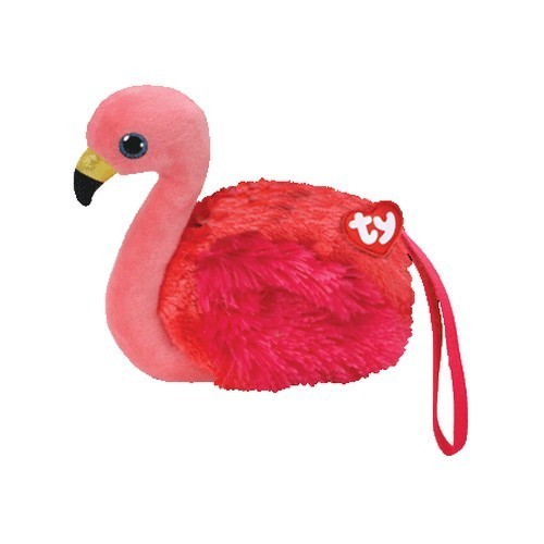 Portfelik dziecięcy z paskiem - flaming Gilda z błyszczącymi oczami. Wymiary 13x13 cm