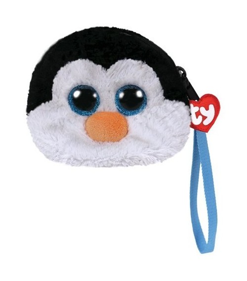 Mini torebka na nadgarstek w ksztalcie pingwina z błyszczącymi oczami. Wymiary 13x10 cm.