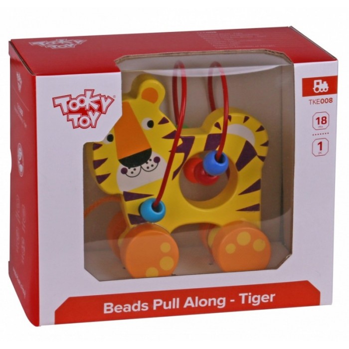 Drewniany Tygrys ma kółka i sznureczek do ciągnięcia. Dziecko, które opanowało zdolność samodzielnego chodzenia może zabrać Tygrysa na spacer.