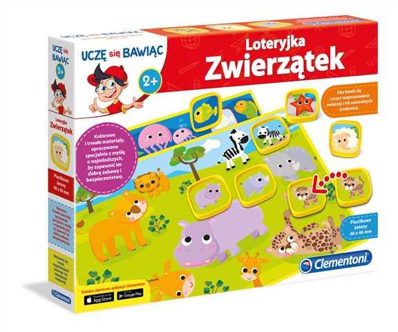 Loteryjka uczy najmłodsze dzieci rozpoznawania zwierząt i współpracy. Zawiera plansze do gry i plastikowe żetony z kolorowymi ilustracjami. Zabawna i edukacyjna gra, zaprojektowana specjalnie w celu stymulowania umiejętności pracy w grupie i obserwacji już od 2 roku życia.