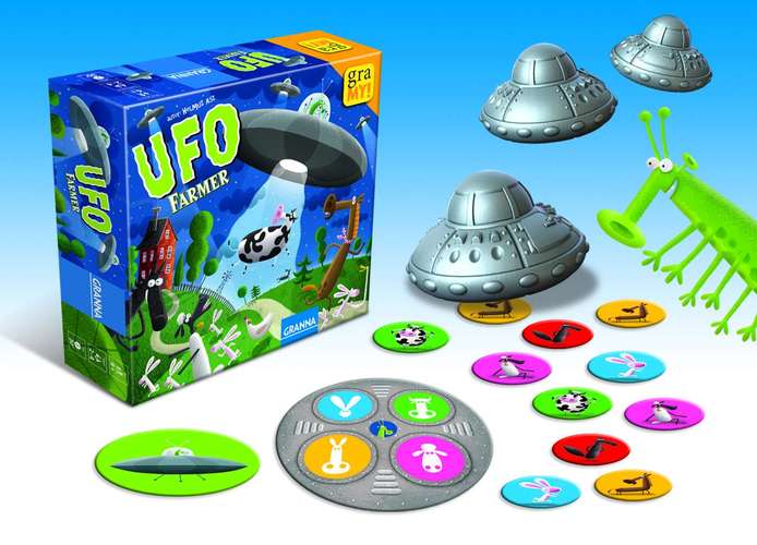 Na farmie pojawił się tajemniczy latający spodek! To UFO! Zwierzaki uciekają w panice, bo kosmici przybyli porwać je na swoją planetę. Czy nasz Superfarmer obroni zwierzątka przed kosmiczną inwazją?Ufofarmer to całkiem nowa gra w świecie Superfarmera. Tym razem gracze nie hodują zwierząt, lecz wcielają się w kosmitów! Niesamowite modele latających spodków i nowatorska mechanika gry zapewnią długie godziny znakomitej zabawy dla całej rodziny!