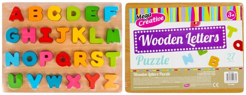 Zalety produktu: dziecko musi ułożyć literki we wnękach podstawki we właściwym miejscu i kolejności, zabawka pozwala na naukę liter, lkolorowe literki rozwijają zdolności malualne dziecka. Drewniana układanka od MEGA CREATIVE to idealne rozwiązanie do nauki literek oraz czytania! Zawartość zestawu: 26 kolorowych literek, podstawka do układania literek. Zabawka wykonana z drewna. Wymiary/waga/baterie: wymiary produktu [cm]: (dł. x wys.)[cm]: 30x23x2 ,wymiar opakowania (dł. x wys.) [cm]: 30x23x2, waga produktu w opakowaniu [kg]: 0,39 kg, nie wymaga zasilania bateriami. Zabawka przeznaczona dla dzieci w wieku: 3+. Pakowana w folijkę.