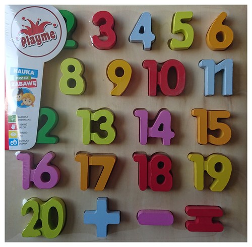 Nauka przez zabawę - układanka drewniana Cyferki 23 elementy.