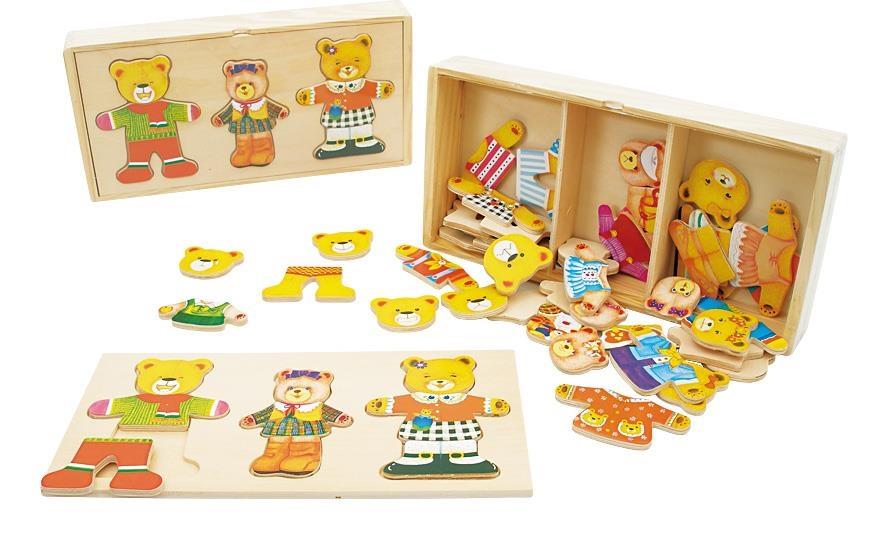 Układanka drewniana para misi z dzieckiem do ubierania.