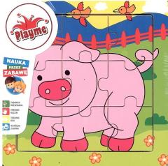 Puzzle drewniane Świnka 9 elementów w ramce.