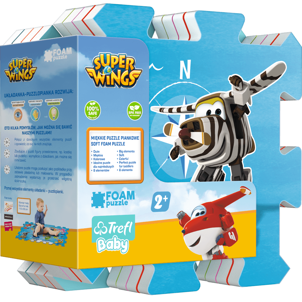 Puzzlo-pianki to duże, miękkie, kolorowe puzzle, z których można budować figury przestrzenne, np. kostkę lub pudełko. Mogą również posłużyć jako podkładka przy innych zabawach. Puzzlo-pianki można łatwo myć.