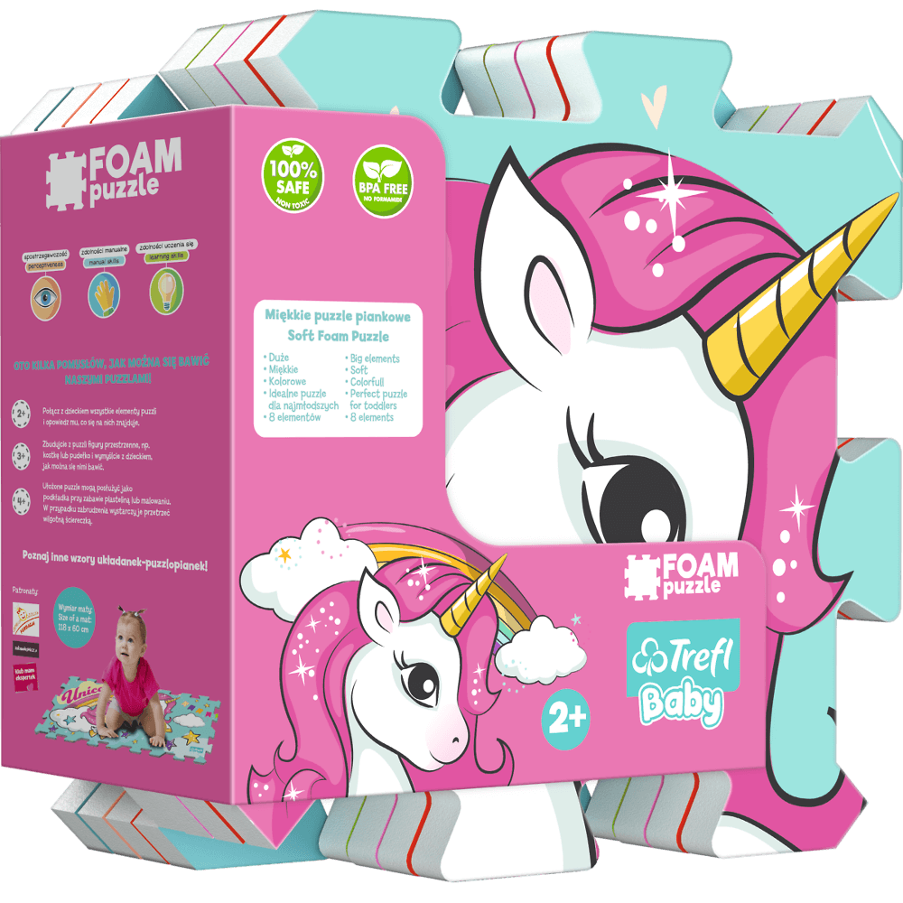 Edukacyjna układanka puzzlo - pianka to zestaw dużych, miękkich, bezpiecznych, kolorowych puzzli, z których można budować figury przestrzenne, np. kostkę lub pudełko. Puzzle piankowe mogą także posłużyć jako miękka mata na podłogę. Zabawka uczy spostrzegawczości, rozpoznawania kolorów i kształtów, budowania figur przestrzennych, zabawy z wyobraźnią. Dla zachowania czystości puzzle piankowe można przetrzeć mokrą ściereczką.