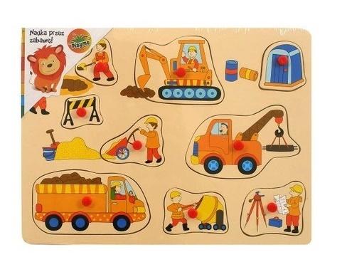 Drewniana układanka z pinezkami 9 elementów.