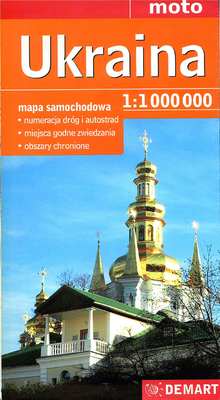 Mapa samochodowa Ukrainy w skali 1:1000 000, z podaną numeracją dróg i autostrad.