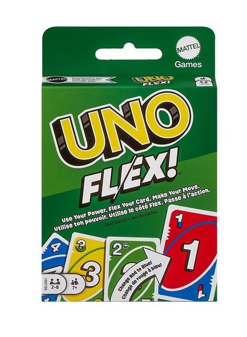 Gra karciana UNO Flex to nowa odsłona uwielbianej gry UNO(R) pozwalająca na zmianę koloru i niektórych zasad! Karty specjalne pozwalają graczom zmieniać kolor karty według potrzeb czerwona 4 może stać się zieloną 4 w mgnieniu oka. Karty Akcji i Zmiany dodają grze jeszcze więcej zwrotów akcji! To doskonały wybór dla rodzin, na imprezy i wieczór gier oraz świetny prezent dla fanów UNO(R) i gier karcianych od 7 roku życia. Kolory i elementy dekoracyjne mogą się różnić.