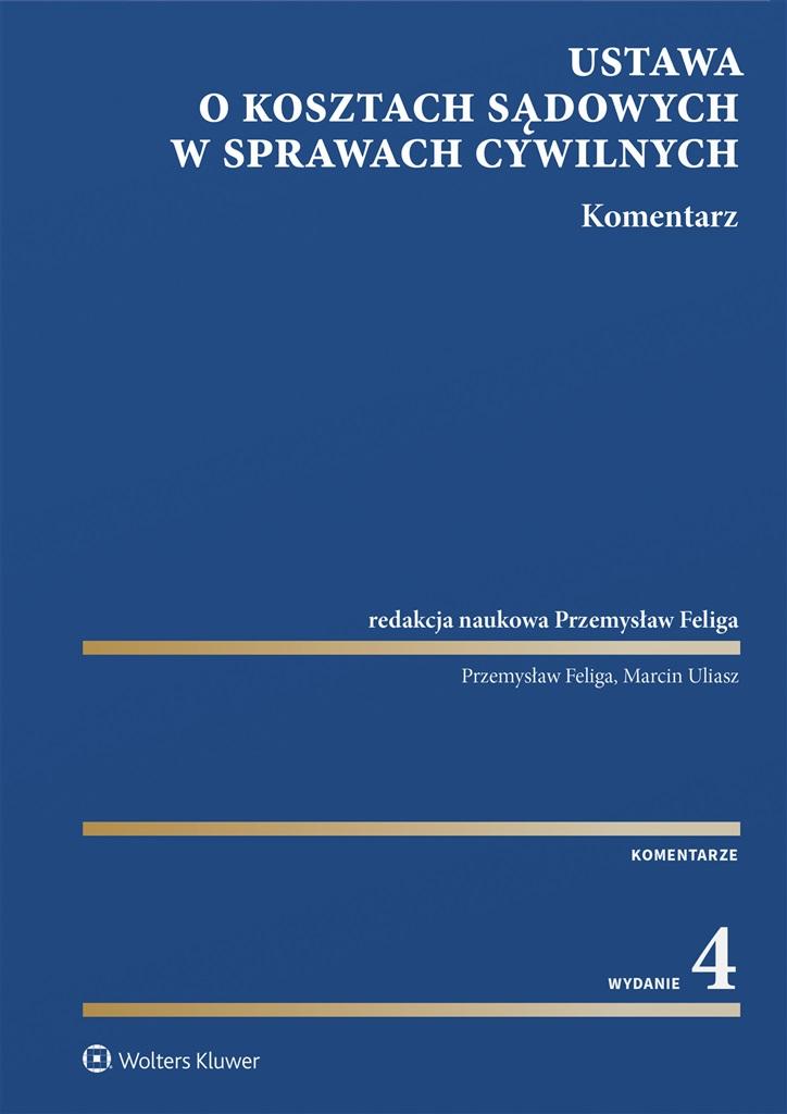 Książka otwarta.png [5 KB]Książka stanowi kompleksowe kompendium wiedzy z zakresu ustawy o kosztach sądowych w sprawach cywilnych napisane przez praktyków z doświadczeniem orzeczniczym w rozstrzyganiu w tego rodzaju sprawach. Autorzy w sposób przystępny i wszechstronny przedstawili rozwiązania problemów związanych z interpretacją przepisów komentowanej ustawy, które wywołują wiele wątpliwości i rozbieżności w praktyce stosowania prawa. Zawartość opis ebooka.png [20 KB]Komentarz zawiera omówienie najnowszych zmian do ustawy o kosztach sądowych w sprawach cywilnych, dotyczących np: wprowadzenia opłaty stałej od pozwu w sprawach o uznanie czynności prawnej dłużnika dokonanej z pokrzywdzeniem wierzycieli - wprowadzenia nowych opłat od wniosku o zawezwanie do próby ugodowej, - zmiany opłat w sprawach pracowniczych, - wynagrodzenia oraz zwrotu kosztów dla kuratora sądowego. W publikacji znajduje się również szerokie odniesienie do piśmiennictwa (komentarzy, monografii, artykułów, glos i innych opracowań) oraz judykatury Trybunału Konstytucyjnego, Sądu Najwyższego, licznych publikowanych oraz niepublikowanych orzeczeń sądów powszechnych, a także Europejskiego Trybunału Praw Człowieka i Europejskiego Trybunału Sprawiedliwości. Adresaci.jpg [8 KB]Książka jest przeznaczona dla wszystkich osób uczestniczących w postępowaniach sądowych w sprawach cywilnych, w szczególności: sędziów, adwokatów, radców prawnych, prokuratorów, referendarzy sądowych, asystentów sędziów. Publikacja będzie także przydatna dla aplikantów Krajowej Szkoły Sądownictwa i Prokuratury oraz aplikantów adwokackich, radcowskich, komorniczych.