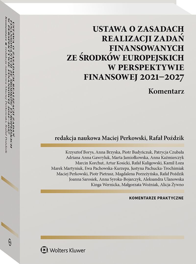 Komentarz omawia zagadnienia związane z procedurą wyboru projektów do wsparcia z funduszy unijnych, ich realizacją, kontrolą i rozliczaniem w perspektywie finansowej 2021-2027. Analizie poddano przepisy ustawy, w kontekście aktów prawnych składających się na system źródeł prawa polskiego i unijnego w zakresie dystrybucji funduszy unijnych, orzecznictwo sądów, poglądy doktryny oraz doświadczenia instytucji zaangażowanych we wdrażanie funduszy unijnych. Autorzy przedstawiają wiele rozwiązań pomocnych w trakcie kontroli administracyjnej i sądowo-administracyjnej wyników postępowań związanych z wyborem projektów oraz ich realizacji. Ustawa o zasadach realizacji zadań finansowanych ze środków europejskich w perspektywie finansowej 2021-2027 uwzględnia niezbędne regulacje pozwalające na stworzenie odpowiedniego systemu oceny, na podstawie której dochodzi do wyboru projektów. Z punktu widzenia ochrony praw i obowiązków podmiotów zainteresowanych wsparciem z funduszy unijnych istotne jest, że normuje ona również zasady kontroli postępowań administracyjnych związanych z odmową przyznania dotacji unijnych. Kontrola ta odbywa się zarówno na poziomie instytucji uczestniczących w systemie wdrażania, jak i przez niezawisłe sądy administracyjne. Książka jest przeznaczona dla adwokatów, radców prawnych, sędziów oraz pracowników ministerstw zaangażowanych we wdrażanie i wykorzystanie funduszy unijnych, samorządów województw i jednostek im podległych, gmin i powiatów jako beneficjentów dotacji unijnych, a także urzędów kontroli skarbowej, Najwyższej Izby Kontroli, Centralnego Biura Antykorupcyjnego. Zainteresuje przedsiębiorców, jak również przedstawicieli nauki oraz studentów prawa i administracji.
