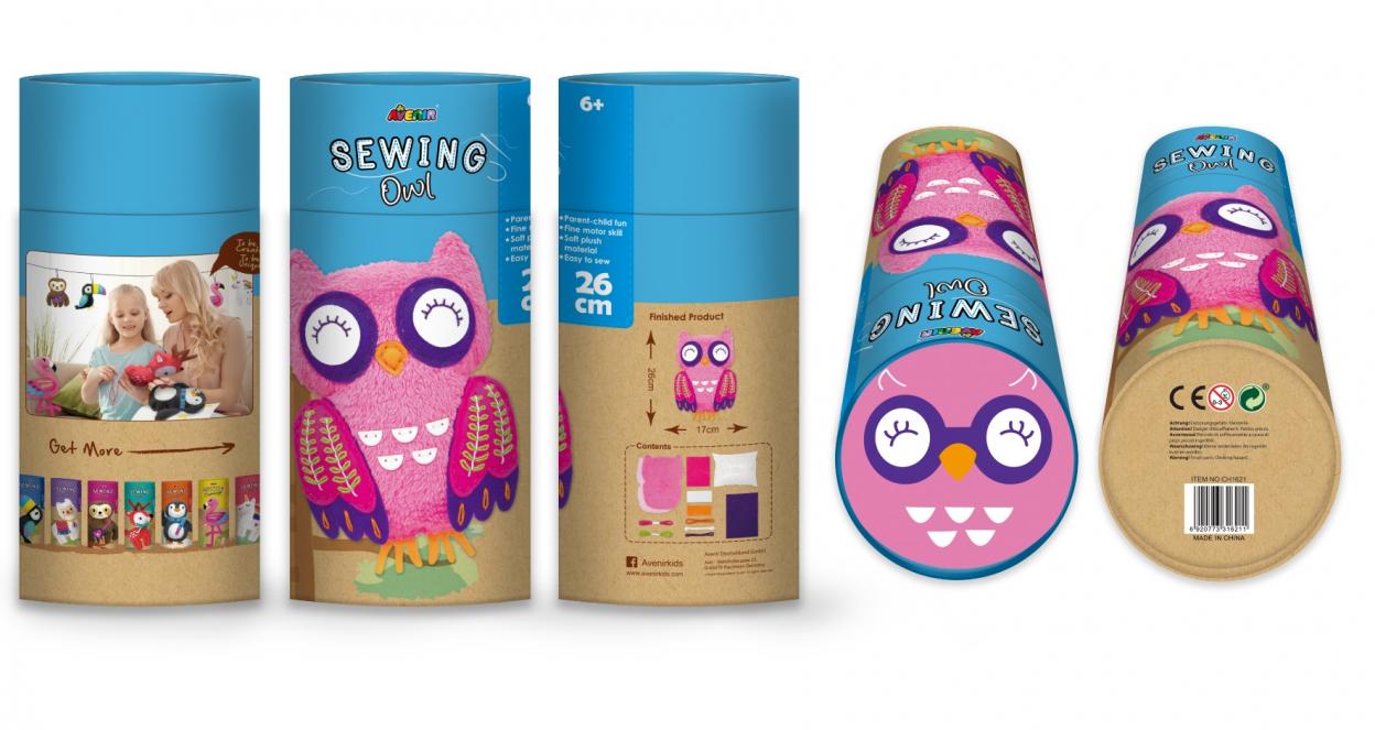 Avenir Sewing to wyjątkowa seria maskotek do samodzielnego uszycia. Maskotka Sowa ma wymiary 25 x 23 cm. Jest bardzo miła w dotyku i mięciutka, z przyjemnego w dotyku filcu. W zestawie: przygotowany do zszycia materiał, wypełnienie, nici (mulina), plastikowa bezpieczna igła. Dziecko poradzi sobie z samodzielnym uszyciem maskotki dzięki bardzo przejrzystej obrazkowej instrukcji. Wiek 6+