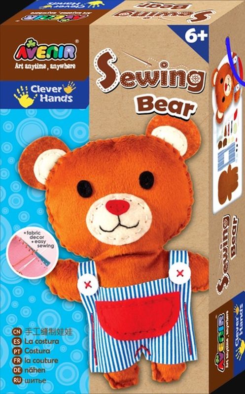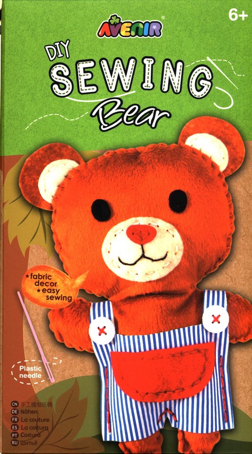 Avenir Sewing to wyjątkowa seria maskotek do samodzielnego uszycia. Miś ma około 23 cm wysokości. Jest bardzo miły w dotyku i mięciutki, z przyjemnego w dotyku filcu. W zestawie są wszystkie niezbędne rzeczy: przygotowany do zszycia materiał, wypełnienie, nici (mulina), plastikowa bezpieczna igła. Już przedszkolak poradzi sobie z samodzielnym uszyciem sobie maskotki dzięki bardzo przejrzystej obrazkowej instrukcji. Avenir Sewing to seria, dzięki której czas spędzony z dzieckiem na kreatywnej zabawie zaowocuje nie tylko fantastycznymi wspomnieniami i wzmocnieniem więzi, ale także... nową ukochaną zabawką! Dla dzieci powyżej 6. roku życia.