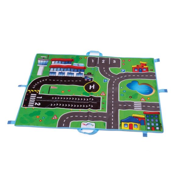 Rewelacyjna mata 2w1. To mata, która może służyć do zabawy samochodzikami. Stanowi również praktyczną torbę do przechowywania zabawek. Możliwość łączenia czterech mat w jedną dużą.
