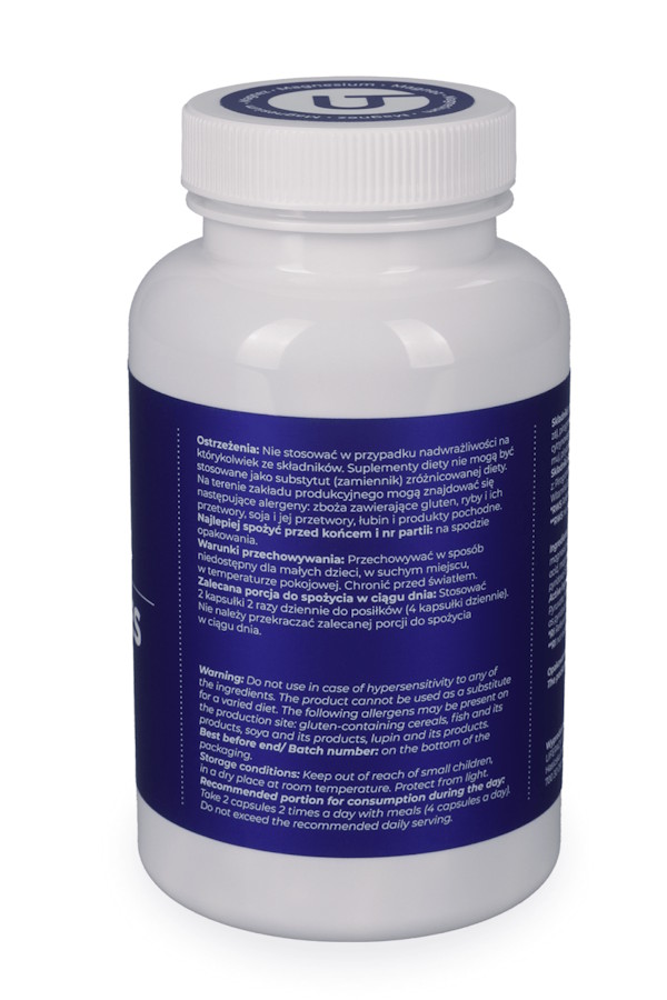 Wzbogacony o witaminę B6 (P-5-P) i taurynę – synergiczne wsparcie metabolizmu magnezu.