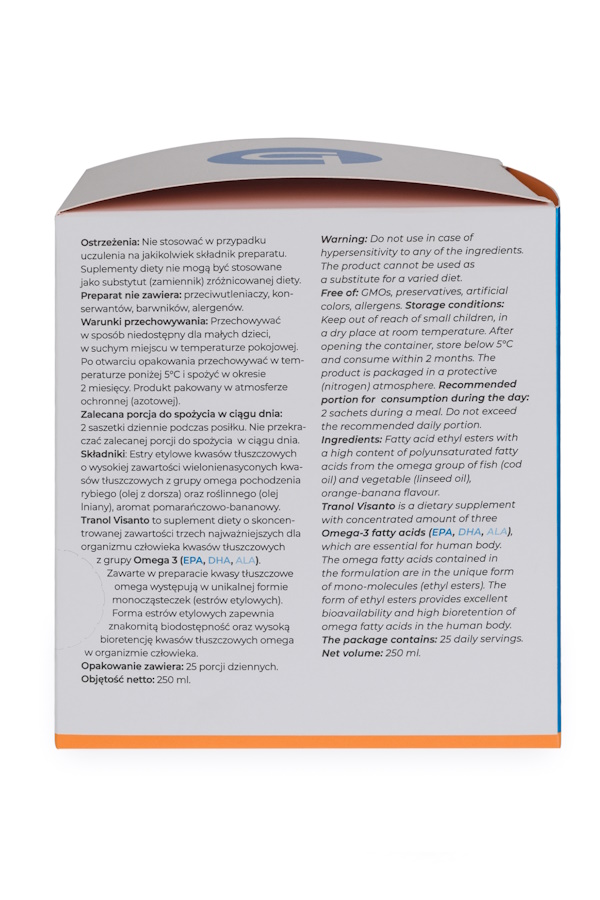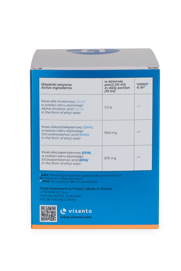 To suplement diety o skoncentrowanej zawartości trzech najważniejszych dla organizmu człowieka kwasów tłuszczowych z grupy OMEGA 3 (EPA, DHA, ALA). Zawarte w preparacie kwasy tłuszczowe omega występują w unikalnej formie monocząsteczek (estrów etylowych).