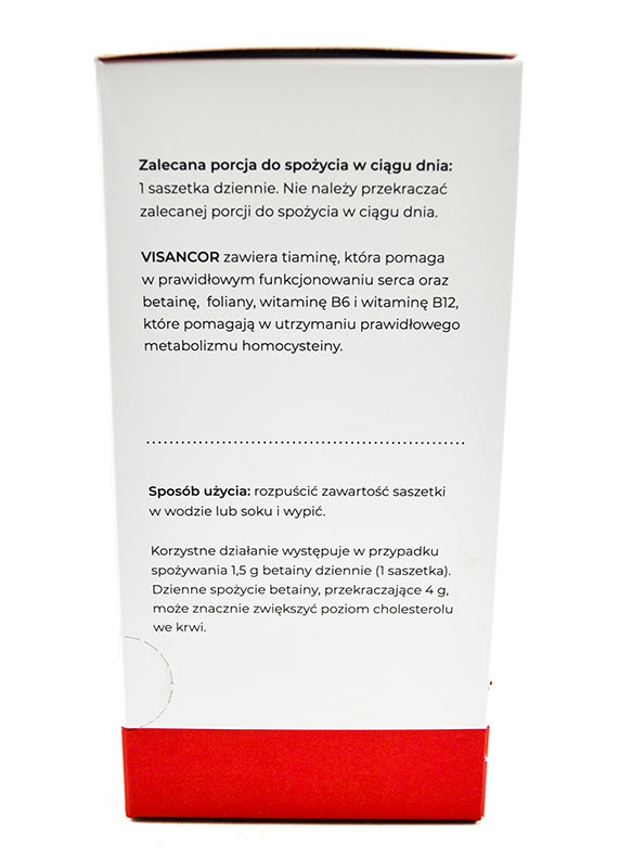 Visancor zawiera tiaminę, która pomaga w prawidłowym funkcjonowaniu serca oraz betainę, foliany, witaminę B6 i witaminę B12, które pomagają w utrzymaniu prawidłowego metabolizmu homocysteiny.