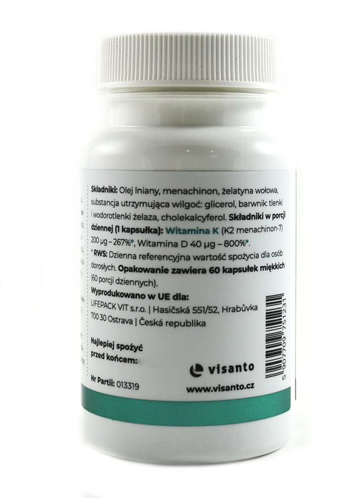 Wartości odżywcze Visanto Zięba Vitamin K-2 MK-7 200mcg 60kaps